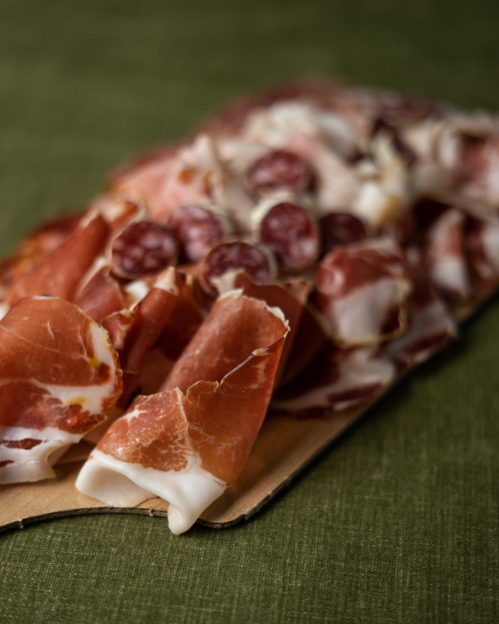 Un assortiment de charcuterie fine, 100g par personne (Jambon Rostello; coppa; rosette de Lyon; chorizo Ibérique;...)