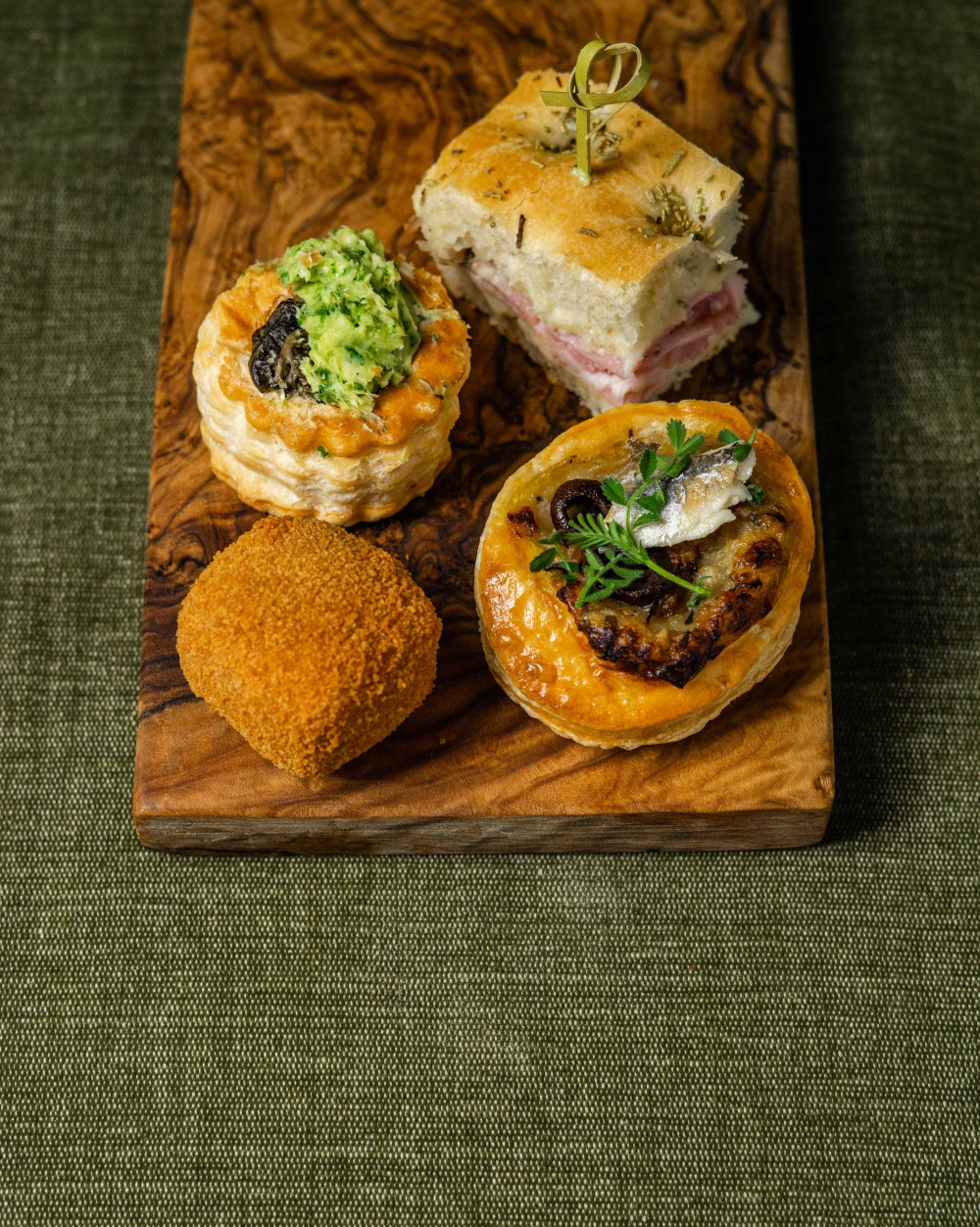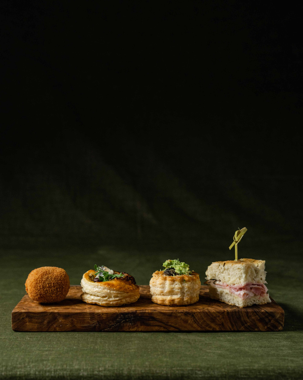 Friand cochon et encornets; Feuilleté escargot; Tarte fine aux champignons; Vol au vent Saint-Jacques