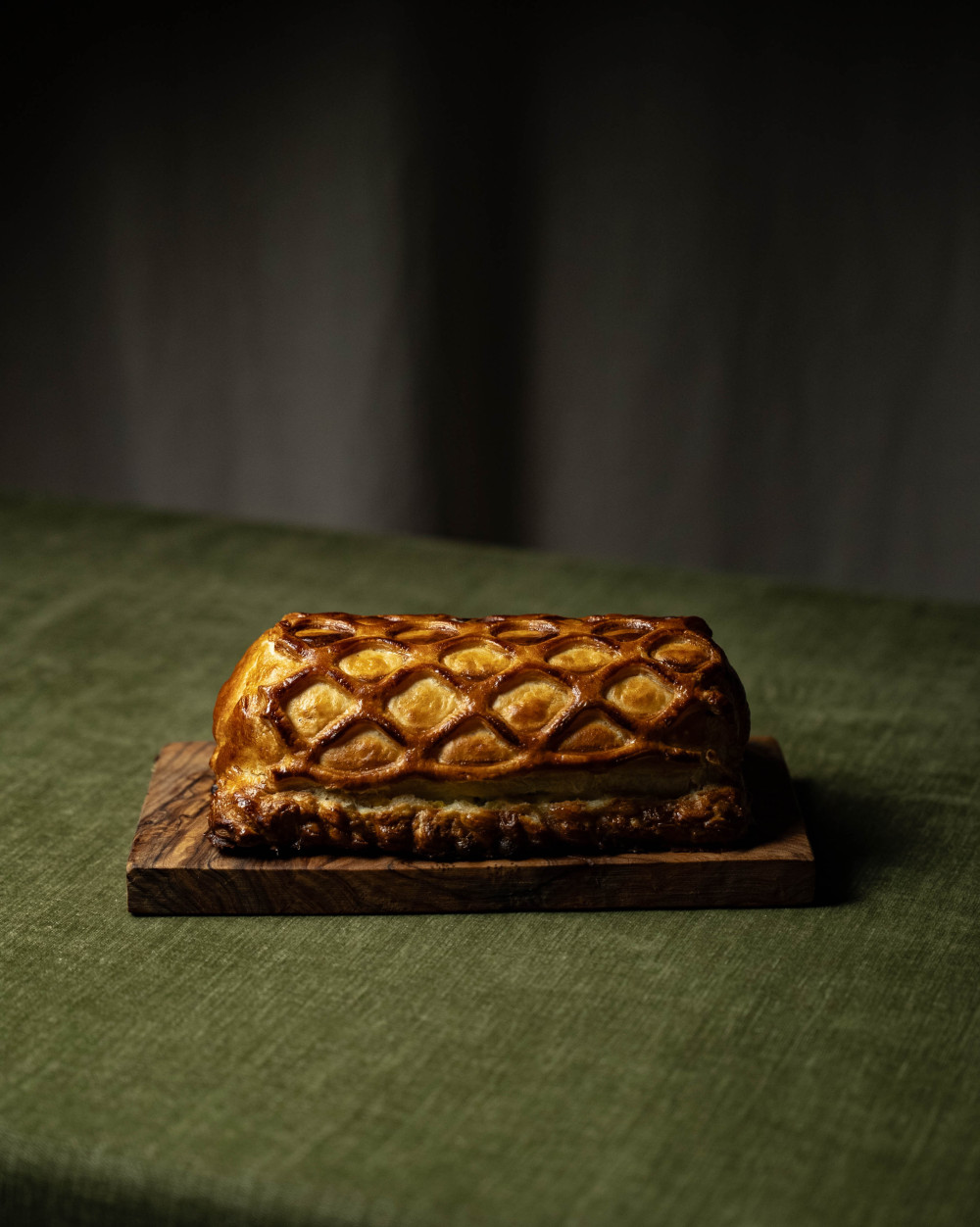 Koulibiac de saumonD’après la recette d’Arnaud Nicolas, MOF charcutier à Paris : cœur de saumon frais et mousseline de saumon sur un lit de riz vénéré, œuf dur et herbes, le tout enveloppé dans une pâte dorée et servi avec un beurre blanc au champagne. Une préparation raffinée aux saveurs délicates.